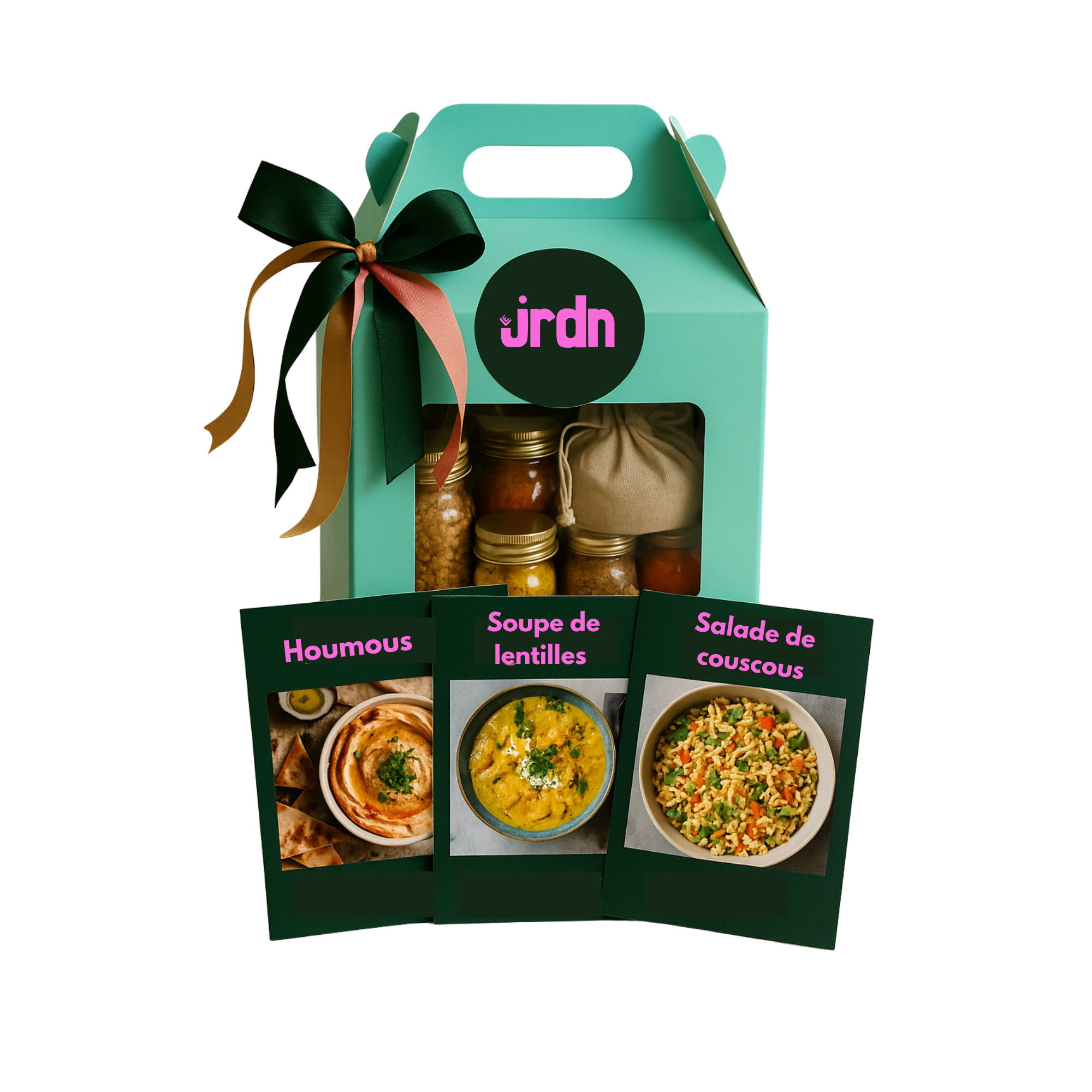 La boîte des Fêtes du JRDN rassemble trois recettes savoureuses à réaliser à la maison, accompagnées d’ingrédients secs soigneusement choisis dans notre garde-manger.